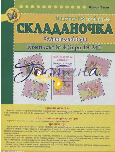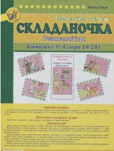 Комплект містить 6 ігор, що складаються із завдань, зміст яких подано на сторінках 2-3, та ігрових картонок (сторінки 4-8). Завдання до ігор №19-20 складаються з 2-х частин, до ігор №21-22 - з 3-х частин, до ігор №23-24 - з 4-х частин.