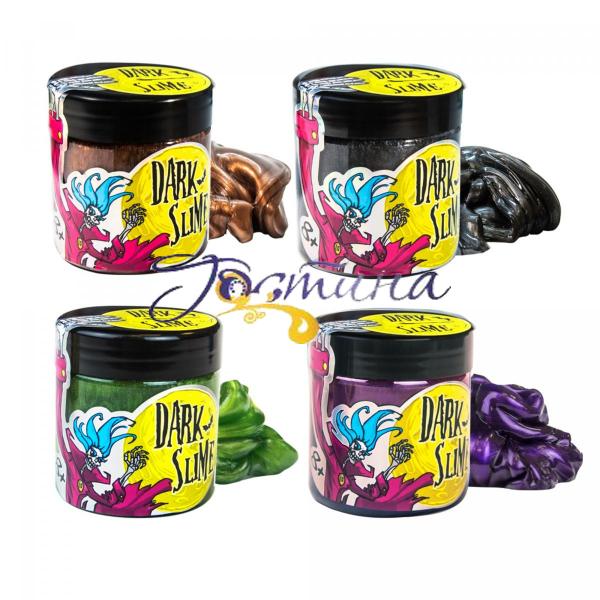 «Dark Slime» - справжня перламутрова досконалість. Слайм, який здатний підкорити кожного. У цій серії представлені слайм зеленого, коричневого, фіолетового і темно-сірого кольору, а це найхарактерніші кольору нечисті. Скручуйте, розминайте, розривайте, розтягуйте його скільки вам захочеться. Слайм має приємний аромат і гладку текстуру. Він стане вашим найкращим антистрес (і не тільки для дітей)