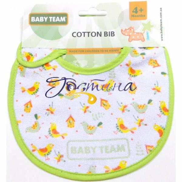 Практичний, м'який і легкий нагрудник на липучці. Захищає одяг дитини від забруднення під час годування. Для більшого захисту від забруднення передбачена водонепроникна підкладка.