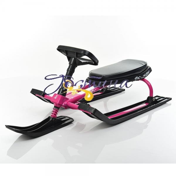 Снігокат MS 1800-1 металевий каркас, м'яке сидіння, рожево - чорний, 107-48,5-38 см