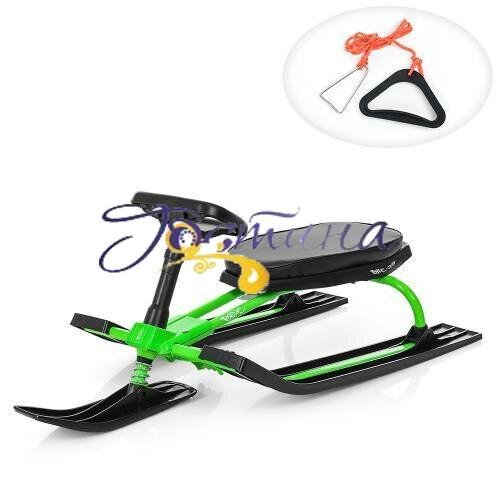 Призначений для катання дітей від 6 до 12 роківНизька посадка і широко розставлені широкі лижі, забезпечують хорошу стійкість.Лижі з морозостійкого (витримують температуру до -45 градусів) і витривалого пластику.Довжина 107 см Висота 39 см Висота до сидіння 24 смШирина 48 см Ширина лижі 11 смДодаткові характеристики: - металева кольорова пофарбована рама - м'яке ПВХ сидіння - рульове управління - гальмівна система - 2 бічні і 1 передня пластикова лижа