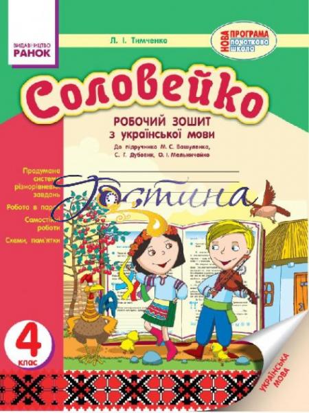 Посібник розроблено відповідно до програми з української мови для загальноосвітніх навчальних закладів з українською мовою навчання та підручника М. С. Вашуленка, С. Р. Дубовик, О. І. Мельничайко (К.: Освіта, 2015).;Матеріал зошита спрямований на вдосконалення та закріплення знань і вмінь учнів. Велику увагу приділено вихованню самостійності четвертокласників у визначенні й розумінні способів дій, у контролі за їх результатом.;Зошит містить різнорівневі завдання, вправи для роботи в парі, мовні ігри, загадки.;Посібник призначений для організації роботи четвертокласників на уроці та вдома