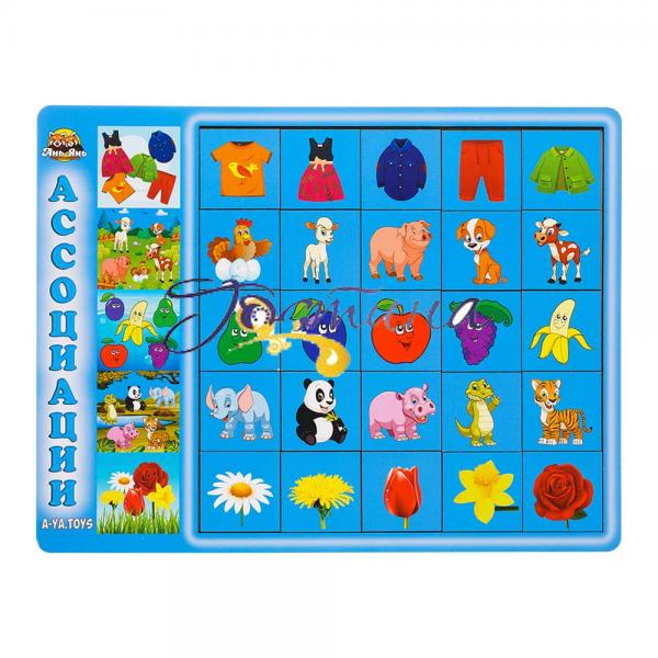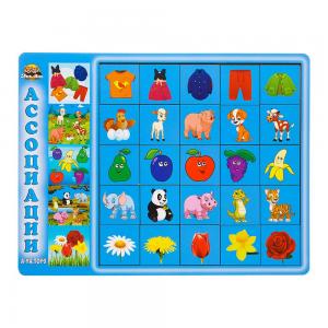 Сортер складається з планшета, на якому зображено 5 картинок і 25 плашок з різними персонажами, які дитині потрібно підібрати під тематичні картинки. Гра добре тренує асоціативне мислення у дітей. Плашки зручно рахувати та грати у гру "5-й зайвий".