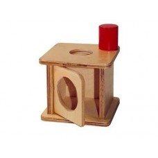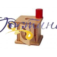 Розвиваюча іграшка - дерев'яна коробочка з дверцятами, круглим отвором на кришці, 3 циліндра, 2 фігурки пофарбовані в рожевий колір. Малюк вкладає фігурку в отвір, відкриває дверцята за спеціально прорізаний отвір, дістає циліндр з коробочки, закриває дверцята і повторює все знову. Матеріал знайомить дитину з геометричною фігурою, її проекцією на площині, розвиває зорово-моторну координацію рухів, дрібну моторику, концентрацію уваги. Формується звичка зорового і тактильного зіставлення фігур і форм. Один з найулюбленіших матеріалів малюків, адже саме у віці від півроку до 2-х років дітям дуже подобається розкладати різні предмети по ємностей і коробочках вправлятися в відкриванні дверцят. Отвір для вкладання циліндра виділено - забарвлене в рожевий колір. Деталі іграшки ретельно відшліфовані і оброблені, покриті лаком. В комлекті: коробочка і 3шт циліндри (2шт пофарбовані, рожеві; 1шт незабарвлений) Розміри: коробочка 12 х 12 х 12 см, діаметр циліндра 3 см. Матеріал: екологічно чиста деревина.