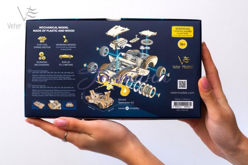 Швидкість, вітер у вухах, адреналін в крові - все це Спідстер-V2. Механічна модель спортивного автомобіля для самостійної збірки. Пластик і фанера - поєднання потужності з витонченістю, дизайну з міцністю, функціональністю з довговічністю.