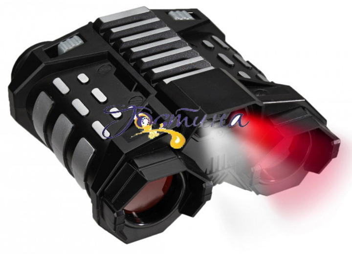 Цей шпигунський бінокль допоможе побачити предмети, наближеними як вдень, так і вночі! Вдень дивіться в об'єктив, регулюючи зображення за допомогою коліщатка, поки воно не стане чітким. Для нічного спостереження є два режими – режим червоного (маскувального) світла та режим білого світла, що дозволяє висвітлити предмети на відстані до 7 метрів! Іграшка для дітей від 6 років. Для використання потрібні 2 батареї ААА (LR03), не входять в комплект.
