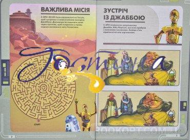Юний падаване, приєднуйся до міжгалактичних пригод! Доля Галактики у руках одвічних суперників – Люка Скайуокера та Дарта Вейдера. Від результатів двобою залежить, на Світлій чи Темній стороні опиниться світ. Приєднуйся до своїх улюблених героїв – розгадуй головоломки, проходь лабіринти, розшифровуй послання – щоб допомогти Люкові та його друзям, принцесі Леї, Чубаці, Хану Соло та іншим подолати зло. Понад 50 наліпок з героями Стар Ворс стануть винагородою за твої зусилля.