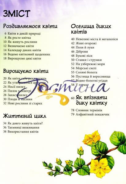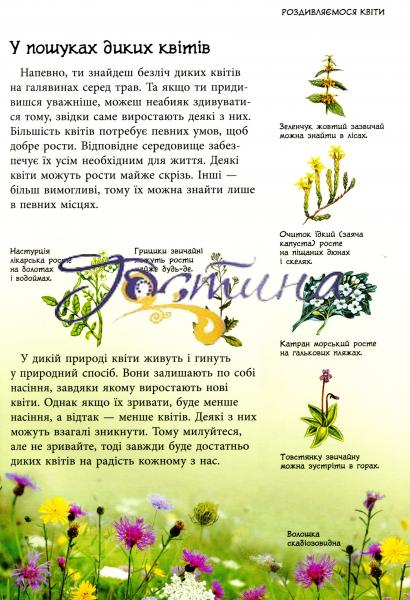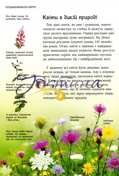 Польовий довідник, створений спеціально для юних дослідників природи. Дитина дізнається захопливі факти та навчиться визначати дикі квіти, які побачить. Дізнається, наскільки корисні ці рослини для тварин і людей, і простежить шлях від насіння до квітки.