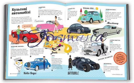 Познайомся з історією автомобілів, починаючи від винаходу колеса до найсучасніших перегонових машин. Сім тисяч років тому людство винайшло перший гончарський круг. Саме цей винахід спонукав людину до створення першого автомобіля. Ці та безліч інших фактів у нашій книзі!