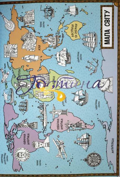 Ця книга познайомить вас з найважливішими історичними подіями, знахідками та особами за допомогою малюнків, які чекають на те, щоб ожити кольорами. Від світових лідерів та жахливих битв до чудових будівель та неймовірних відкриттів — на кожній сторінці можна дізнатися про щось нове. До кожного малюнку є підпис, який розповість ще більше інформації про нього. Це допоможе вивчити найяскравіші події світової історії. На деяких сторінках представлені декілька країн, інші — присвячені лише одній. Тут також є мапа світу на початку та лінія часу наприкінці книги. Їх теж можна розмалювати!