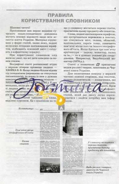 Енциклопедичний словник містить відомості, що розкривають усю багатогранність життя України — її історію, науку та культуру, географію, археологію, природні особливості, рослинний і тваринний світ та багато іншого.