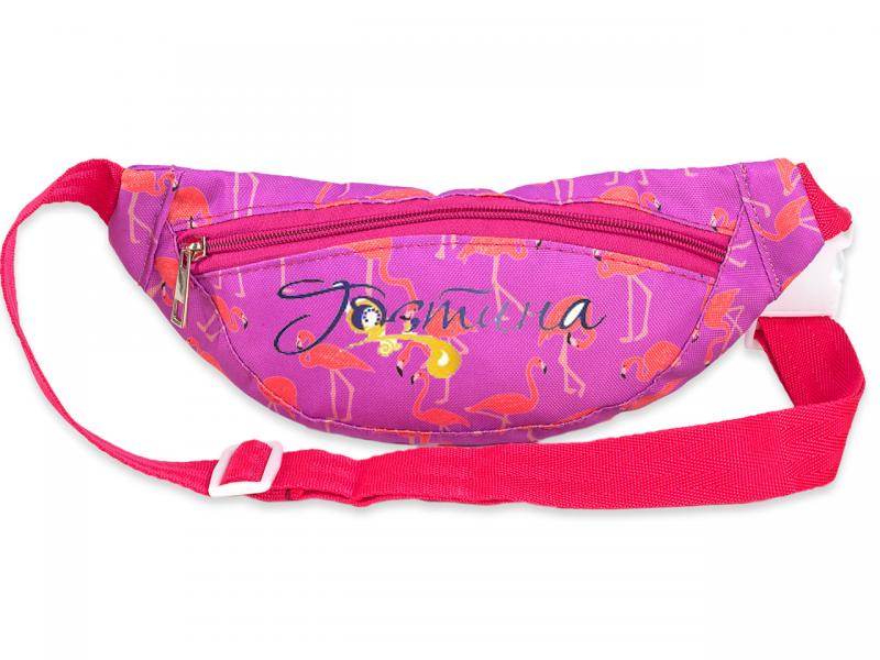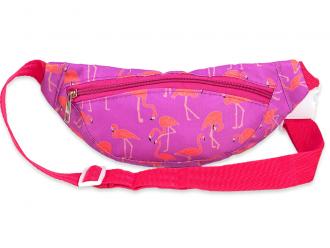 Сумка-бананка на пояс рожевого кольору з принтом ФЛАМІНГО