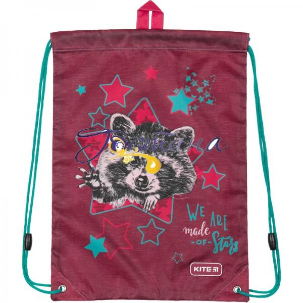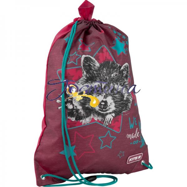Сумка для взуття Kite Fluffy racoon К19-600S-1 виготовлена з поліестеру бордового кольору із зображенням модного єнота. Дівчаткам 6-8 років сподобається носити в ній речі на уроки фізкультури та спортивні секції. Змінне взуття, складена у легку й міцну сумку-мішок, не буде бруднити рюкзак. Сумку можна носити за спиною як невеликий рюкзачок. - 1 відділення. - Петля для вішалки. - Сумка закривається за допомогою нейлонового шнурка з пластиковим фіксатором. - Призначена для зберігання і перенесення спортивного одягу і взуття. - Ідеально поєднується з рюкзаком і пеналом цієї ж серії. Матеріал: поліестер. Пройшов складні тести на зносостійкість і розриви, стійкий до впливу зовнішніх факторів. Не вигорає, зберігає свої властивості і зовнішній вигляд після прання.