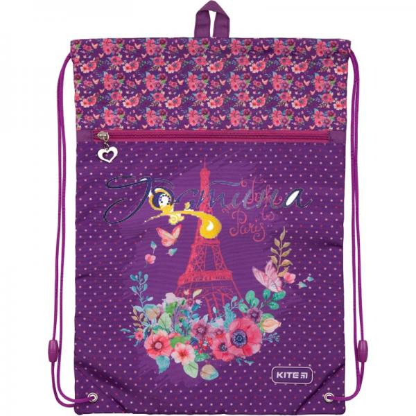 Сумка для взуття Kite Paris K19-601M-7 виготовлена з фіолетового поліестеру з квітковим принтом і зображенням Ейфелевої вежі - символом найромантичнішого міста у світі. Дівчаткам 6-8 років сподобається носити в ній речі на уроки фізкультури та спортивні секції. Змінне взуття, складене в легку і міцну сумку-мішок, не буде забруднювати рюкзак. Сумку також можна носити за спиною як невеликий рюкзачок. - 1 відділення. - Передня кишеня на блискавці. - Петля для вішалки. - Сумка закривається за допомогою нейлонового шнурка з пластиковим фіксатором. - Призначена для зберігання і перенесення спортивного одягу і взуття. - Ідеально поєднується з рюкзаком і пеналом цієї ж серії. Матеріал: щільний поліестер. Пройшов складні тести на зносостійкість і розриви, стійкий до впливу зовнішніх факторів. Не вигоряє, зберігає свої властивості і зовнішній вигляд після прання.