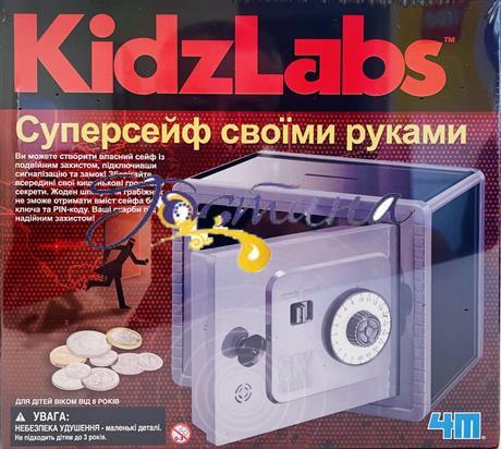 Усі деталі сейфа з серії KidzLabs виготовлені з металу та пластику. Додатково варто запастися хрестоподібною викруткою та батарейкою AA.