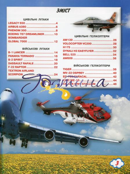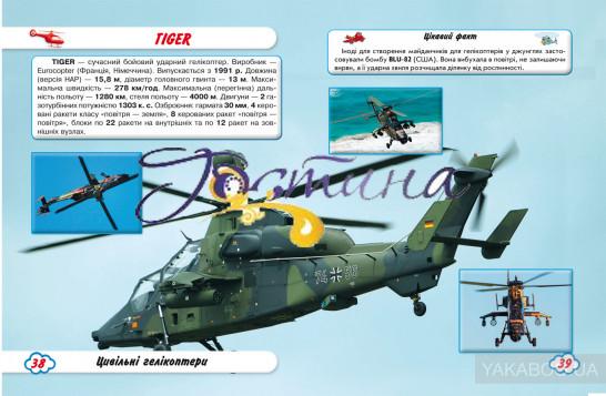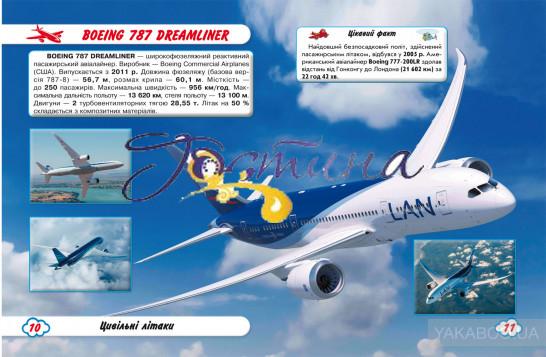 Коли на початку XX ст. брати Райт побудували перший аероплан, здійснилася давня мрія людини підкорити небо. У наш час «залізні птахи» стали надійними помічниками людей. Ця енциклопедія містить інформацію про сучасні цивільні й військові літаки та гелікоптери. Ви зможете ознайомитися з їхніми льотно-технічними характеристиками й скласти уявлення про те, який вигляд вони мають. Яскраве кольорове видання може стати чудовим подарунком або зайняти гідне місце у вашій бібліотеці.