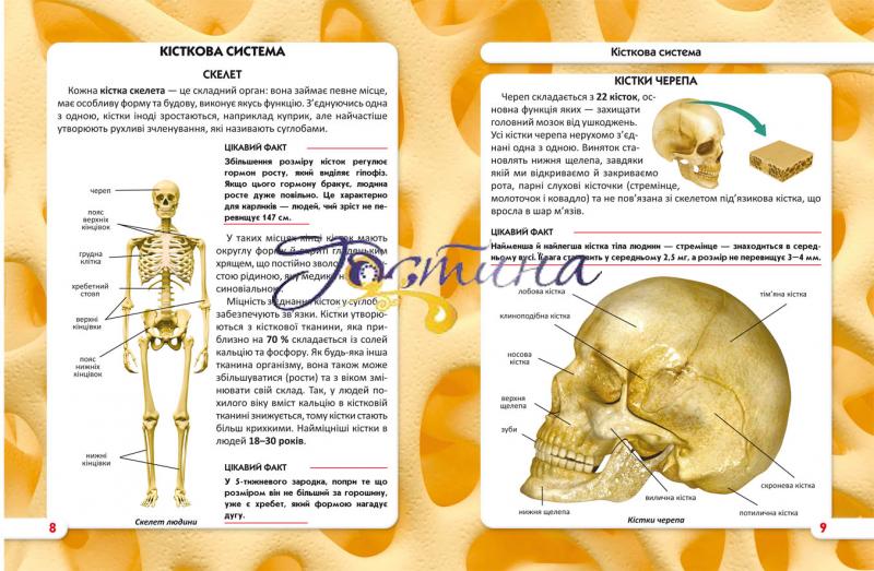 Наша книжка просто і доступно розповість про будову тіла людини, призначення скелета, м'язів і внутрішніх органів. Невеликі, але місткі тексти з безліччю цікавих фактів допоможуть зрозуміти, як функціонує ця складна і гармонійна система, а барвисті ілюстрації дозволять поглянути на організм із середини. Видання, у якому розкрито секрети людського тіла, зможе зацікавити не тільки підлітків. Воно стане в пригоді й дорослим читачам, які бажають знати більше, ніж пропонує шкільний курс анатомії.