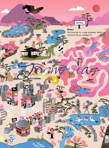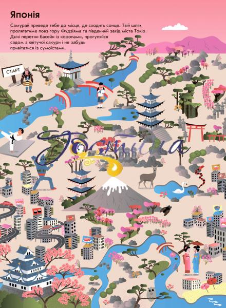 Велика книга-віммельбух на картоні із лабіринтами. Кожен лабіринт – нова частина світу. Цікаві підказки до лабіринтів познайомлять читача із країнами світу. Від Гімалаїв до джунглів Амазонки! Чи готові ви здійснити подорож навколо світу у 15 лабіринтах?
