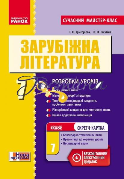 Посібник містить розробки лекційно-практичних (комбінованих) уроків, уроків позакласного читання, розвитку мовлення, контролю знань, які повністю охоплюють вивчення як обов'язкових програмних творів зарубіжної літератури, так і творів для позакласного читання. Плани-конспекти, поміщені в посібнику, дають вчителю можливість використовувати на заняттях з літератури надзвичайно різноманітні форми роботи і подання матеріалу. Всі уроки розроблені таким чином, щоб не тільки дати учням передбачений програмою обсяг інформації, але і розширити культурний кругозір школярів.