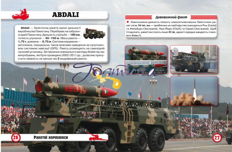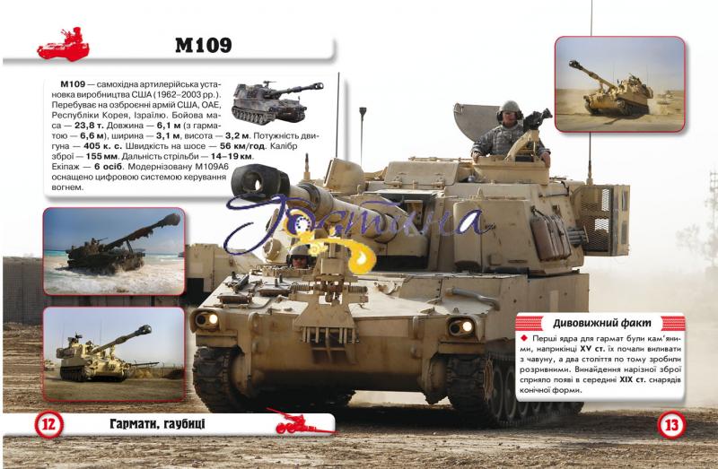 Артилерію недарма називають богинею війни. Адже саме великокаліберна зброя забезпечує вогневу підтримку, від якої зазвичай залежить результат бою. На сторінках нашої енциклопедії зібрано інформацію про тактико-технічні характеристики окремих гармат і гаубиць, ракетних і зенітно-ракетних комплексів, реактивних систем залпового вогню. Потужність цих видів озброєння відображають розміщені в книжці фотоілюстрації. Яскраве кольорове видання може стати чудовим подарунком або зайняти гідне місце у вашій бібліотеці. Книжку адресовано юним читачам та їхнім батькам.
