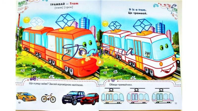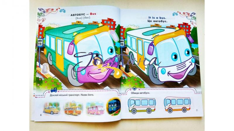 У книжці багато унікальних розвивальних завдань і навчального матеріалу. На кожній сторінці — назва транспортного засобу англійською мовою з транскрипцією. Багато завдань на логіку, уважність, просторове мислення, кмітливість. І, крім того, правила дорожнього руху для дошкільнят з поясненнями дорожніх знаків та порядку перетину проїжджої частини.