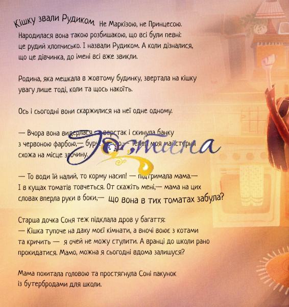 Жила собі кішка. Звали її не Маркіза, не Принцеса — просто Рудик. Кішка-бешкетуха завдавала чимало клопоту всій родині. Та чи насправді від неї не було жодної користі? Здається, що улюблена справа Рудика — дрімати на траві під черешнею. Але тільки-но щось трапляється, кішка вже поспішає на допомогу. Справжній супергерой із пухнастою мордочкою та гострими кігтями!