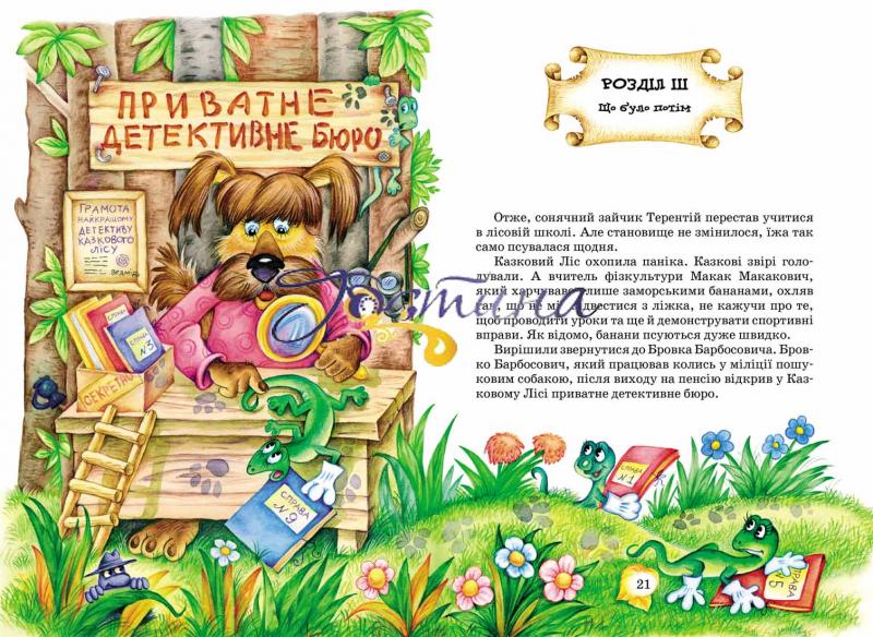 Легка, життєрадісна, сповнена доброго гумору книга завершує розповідь про веселі, дотепні пригоди зайчика, їжачка та їхніх однокласників, учнів спеціалізованої музичної лісової школи з ведмежою мовою викладання, а також про новостворений пташиний лісей.