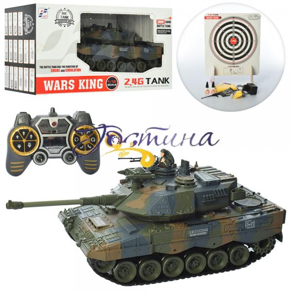 Танк 789-4 на радиоуправлении, аккумулятор, 44 см, 1:18, звук, свет, стреляет водяными и пластиковыми пулями, дым, в коробке. Размер - 54,5-30,5-22 см, Материал - пластмаса, Тип упаковки - Window Box.