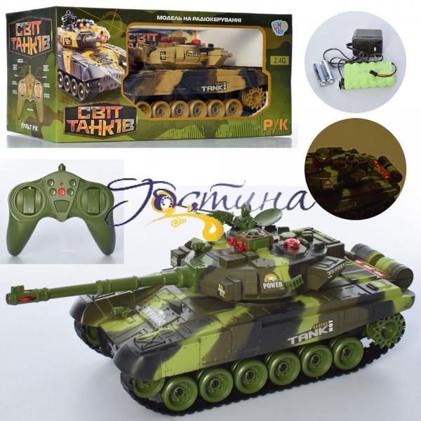 Керований по радіо танк - мрія будь-якого хлопчика. Деталізована модель танка в точності повторює свій прототип і володіє реалістичними звуковими і світловими ефектами, а вежа танка обертається! Працює від вбудованого акумулятора, в комплекті додається зарядний пристрій. Пульт працює від батарейок (в комплект не входять).