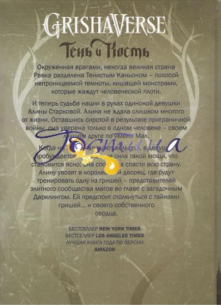 Книга, з якої почалася історія грішeй - людей з магічними здібностями. Книга увійшла до списку бестселерів New York Times і Los Angeles Times; права на її екранізацію придбав продюсер Девід Хейман - людина, завдяки якому побачили світ фільми про Гаррі Поттера. Про що? Аліна Старкова - сімнадцятирічна дівчина? Сирота, яку відправили на війну в прикордонну зону. Вона знає, що, можливо, не переживе свій перший бій. Але дорожче життя їй Мал - її єдиний друг, якого вона боїться втратити. Коли на них нападають волькри - монстри, ворожі породження темряви, - Аліна несподівано відкриває в собі силу, про яку не підозрювала. Магія Аліни так сильна, що стає ясно: вона здатна врятувати всю країну. Аліну відвозять в королівський палац, де будуть тренувати як одну з Грицем - представників елітного співтовариства магів на чолі із загадковим Дарклінгом. Їй належить зіткнутися з таємницями Грошей ... і свого власного серця. Для кого? Для шанувальників світу грішeй і дилогії «Шістка воронів», а також для всіх тих, хто любить по? Справжньому захоплююче і якісне підліткове фентезі. Чому варто прочитати? З? За атмосфери - за словами самої письменниці, при роботі над створенням роману вона надихалася образами царської Росії. Щоб описати країну, в якій вгадуються знайомі нам риси, Лі Бардуго на два місяці занурилася у вивчення російської історії і фольклору - і була дуже захоплена цією темою. З? За сюжету - Бардуго вміло і захоплююче схрещує долі окремих людей і долі цілих націй; життя персонажів сповнене небезпек, несподіваних зустрічей, сильних емоцій, любові, ненависті, ризикованих вчинків і запаморочливих спокус.