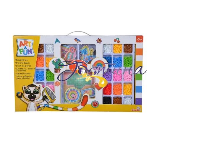 Мегавеликий набір Термомозаїки. Набір складається із 6000 кольорових елементів, 8 фігурних трафаретів й 1 великий квадратний трафарет для створення мотиву за своїм бажанням. Лише виберіть один із представлених трафаретів, викладіть бажаний мотив. Після завершення, за допомогою дорослих, через аркуш паперу проведіть поверхнею теплою праскою і ви отримаєте суцільну іграшку. З мозаїки можна збирати браслети та прикраси. Граючи набором, дитина розвиває свої творчі здібності, увагу, уяву та дрібну моторику пальців.