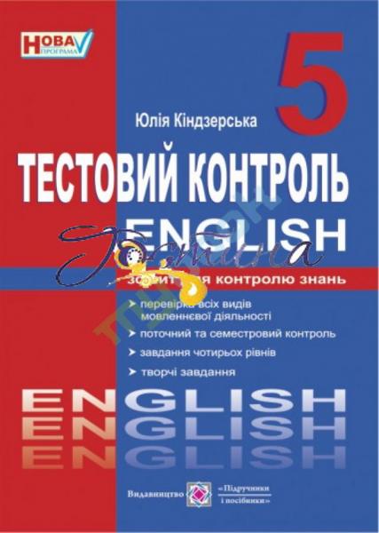 осібник призначений для тестового контролю навчальних досягнень учнів з англійської мови в 5 класі. Він містить завдання чотирьох рівнів складності у двох варіантах. У посібнику подані завдання для перевірки трьох видів мовленнєвої діяльності. Посібник може бути використаний як дидактичні матеріали для вивчення англійської мови в 5 класі. Для вчителів англійської мови та учнів 5 класу.