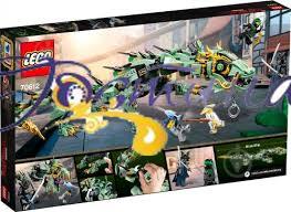 Злий Лорд Гармадом, озброєний потужним лазером, загрожує всім жителям Ніндзяго Сіті. Забравшись на хмарочос, він вимагає здати місто без бою, інакше він буде повністю зруйнований. Городяни в паніці розбігаються хто куди, і їх надія здається майже втраченої. Але ось з-під хмар з'являється механічний дракон. Перебуваючи під керуванням Зеленого ніндзя, він мчить в сторону загарбників. Його величезна паща відкривається і демонструє гострі ікла. Гармадон заряджає свій лазер і готується завдати смертельного удару.Але не тут-то було! В одну мить зброю виявляється в пащі дракона, при цьому солдат армії акул, що поспішає на підмогу господареві, отримує приголомшуючий удар хвостом. Результат поєдинку зможе вирішити тільки чесна дуель Гармадона і Зеленого ніндзя, але хто здобуде перемогу - батько чи син - неможливо передбачити.З деталей набору Лего 70612 Ви зможе зібрати механічного дракона зеленого ніндзя. Його тіло виконано в зелено-чорному кольорі з додаванням яскравих золотих акцентів. Спереду видно масивна голова з відкривається ікластої пащею і стирчить рожево-фіолетовим мовою. Вигнуті вуса, маленькі ріжки і салатові очі виглядають дуже ефектно.За головою розташовується масивна шия. На ній влаштовано своєрідне сідло для Ллойда. Перебуваючи в спеціальній ніші, він займає місце перед моніторами і важелями, що дозволяє управляти драконом.На особливу увагу заслуговує конструкція передніх лап змія. Вони обладнані напівкруглими броньованими щитками, піднявши які можна розглянути спарені двигуни з блакитним світінням. Також на них закріплені шутери, здатні вести прицільний вогонь по противникам.Завдяки шарнірній будові, тіло дракона дуже рухоме. Можна реалістично рухати тулубом, шиєю і лапами. Найбільш активна частина скелета - хвіст. Повертаючи спеціальний важіль, можна привести його в рух і використовувати як додаткову зброю.Розмір дракона становить 13х60х12 см.У набір входять 4 мініфігурки зі зброєю і аксесуарами: Зелений ніндзя, Майстер Ву, Гармадон і його поплічник Чарлі.
