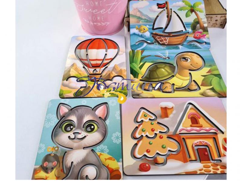 На плашках намальовані різні сюжети, щоб дитині було цікавіше вчитися.