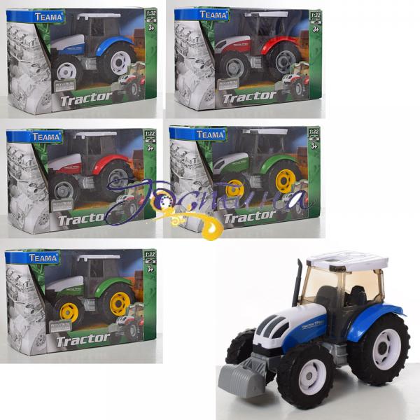 Трактор 60072 1:32, 14см, 2 види по 3кольори, в коробці. Розмір - 18,5-12-8см, Матеріал - пластмаса,