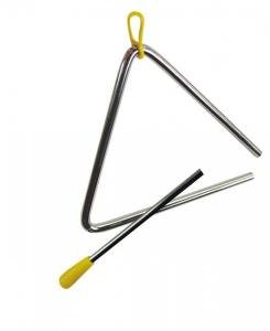 Цей музичний інструмент , який має вигляд металевої лози, зігнутою в формі трикутника, зачарує малюка своїм казковим передзвоном. Один з кутів трикутника залишений відкритим, він підвішується за спеціальну петельку і по ньому ударяють металевою паличкою. Тембр звуку залежить від удару і торкання іншого матеріалу до трикутника. Взявши в руки паличку, малюк перетвориться в чарівника, який витягує легкими рухами руки чарівні і ніжні звуки.Трикутник розвиває: музичний слух малюка, відчуття ритму, покращує координацію рухів.