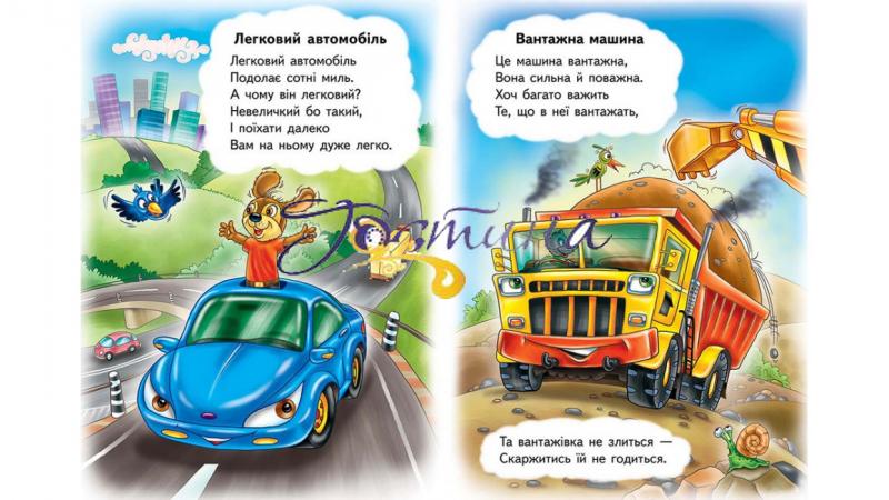 До збірки увійшли короткі і легкі для запам'ятовування вірші про транспорт, які сподобаються і батькам, і дитині. Крім того, тут є веселі завдання, загадки, а також питання, над якими цікаво міркувати.