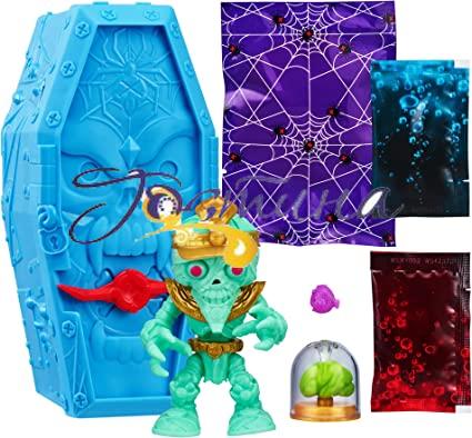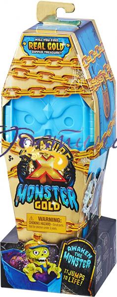 Treasure X повернувся, і цього разу він жахливий! Візьміть на себе 13 рівнів пригод у скарбі X Monster Gold... Якщо ви наважитеся.. і спостерігайте, як ваш Монстр оживає, коли ви полюєте за справжнім золотим змоченим скарбом! По-перше, використовуйте Crow Bar, щоб відкрити труну, щоб почати розпакування та шукати через Spider Web Compound, щоб знайти моторошні предмети та інгредієнти. Змішайте знайдені інгредієнти, щоб утворився вируючий слизовий еліксир. Налийте його в труну New Blue і спостерігайте, як ваш Монстр дивує вас і оживає! Продовжуйте свої огидні пошуки Скарбу, зламавши голову істот. Які скарби, що світяться в темряві, ви знайдете всередині? Чи буде це золотий змочений павук-блінгбек? На цьому пригода не зупиняється. Відкрийте для себе Банку мозку і помістіть мозок монстра в його голову і поверніть його до життя знову! Потім покажіть скарб свого монстра в банку для мозку. Ви навіть можете покласти свого Монстра назад у його труну і змусити його підстрибувати і лякати знову і знову! Є 6 фігур монстрів, які можна знайти та зібрати! Ці іграшкові фігурки Treasure X тепер більші, ніж будь-коли! Завдяки чудовій різній обробці, включаючи металік, світіння в темряві та рідкісного золотого монстра, дітям сподобається розпаковувати цих колекційних персонажів. Ви навіть можете поміняти місцями частини тіла свого Монстра, щоб створити власних моторошних істот!