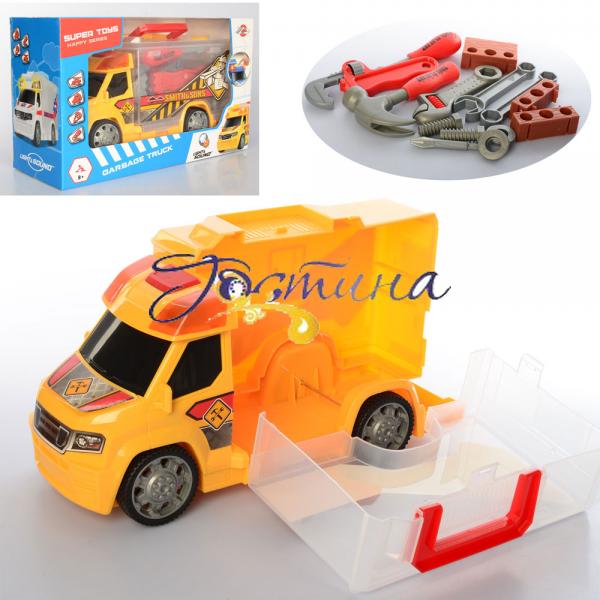 Трейлер 969-K08 32см, зв, св, інструменти, на батарейках, в коробці. Розмір - 29,5-24-14,5см, Тип живлення - на батарейці, Матеріал - пластмаса