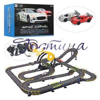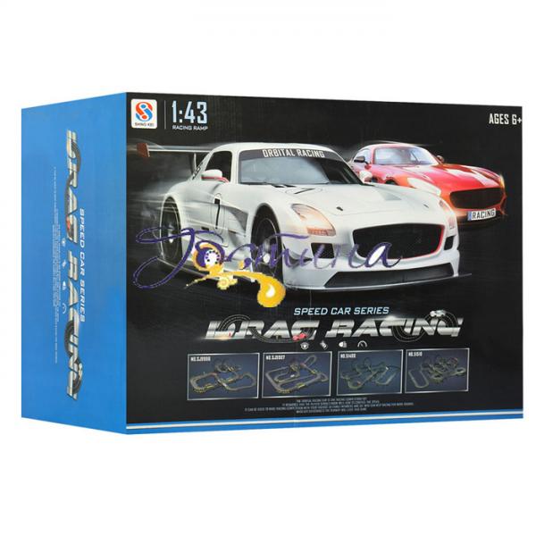 Це не просто іграшка, а справжній гоночний трек, змагання на якому будуть проходити прямо в дитячій! Траса рясніє різкими поворотами, крутими віражами. Тут у Ваших дітей буде відмінна можливість проявити свою майстерність водія і обійти суперника в боротьбі за перемогу. особливості: Масштаб 1:43; Матеріал: пластик; Світлові ефекти; Розмір машинки: 10 см .; Є кілька варіантів збірки траси; Розмір: 204х150 см.