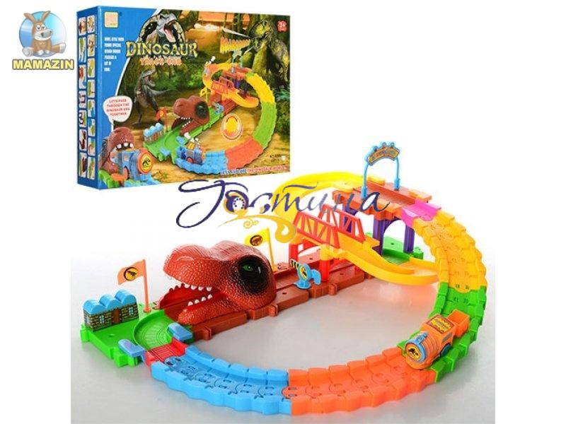 Залізниця багаторівнева конструктор Динозавр 52 деталі 8085- цікава і розвиваюча іграшка - 2 в 1 - і дитяча залізниця, і конструктор. Дитина спочатку грає набором як конструктором, а потім гра триває з паровозиком. Головною 'родзинкою' і прикрасою іграшки є печера у вигляді голови динозавра.