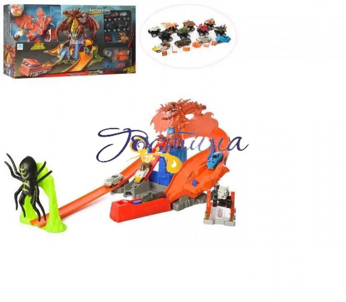 Трек дракон (механічний), машинки-тварини, 12шт, від 5,5 см, дорожні знаки. Іграшка 'Трек механічний' Дракон '' повністю безпечна для здоров'я дитини і зроблена з якісних матеріалів,підходить для дітей старше 3-х років.