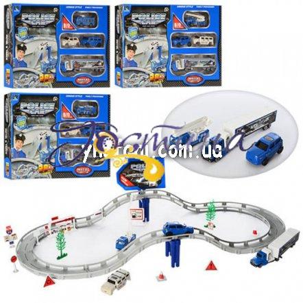 Ігровий набір    - це прекрасна іграшка для хлопчиків з ним можна весело проводити час за захоплюючою грою.  Трек Поліція  - захоплюючий ігровий набір для будь-якого хлопчика. Дана гра перенесе дитини в захоплюючу і екстремальну гру, так як траса звивиста, складається з декількох рівнів, за якими дитина запустить свої машини. Трек сприяє розвитку концентрації уваги, реакції, а так само дитина зможе познайомитися з дорожніми знаками. Набір складається з 29 деталей, в які входять декор, що складається з дерев, приміщень, дорожніх знаків і деталей самої траси. Для роботи потрібно 1 батарейка типу АА (в комплект не входить).