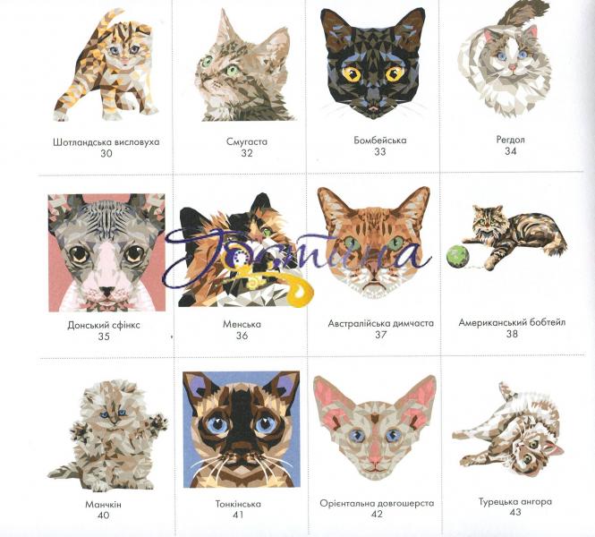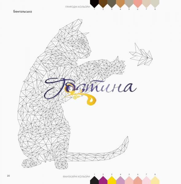 60 графічних малюнків для розмальовування за номерами. Любите котиків, так? Якщо б ви їх не любили, навряд чи б гортали ці сторінки. Тож вітаємо! Ця унікальна книга допоможе вам виразити свою симпатію до них ще й у кольорі. Тут вас зустрічають: чарівний шотландський висловухий кіт, грайлива бенгальська кішка, добрий велетень мейн-кун та багато інших. Коти тільки й чекають, коли ви надихнете в них життя. Кожний муркотун має свій власний номер, отже ви не заплутаєтеся. Можете одягнути пухнастиків у шубки їхнього природного кольору, а можете пофантазувати й використати фантазійні кольори. Наприкінці ви знайдете вісім сторінок із котячими мордочками. Розмалюйте та створіть з них веселі маски!