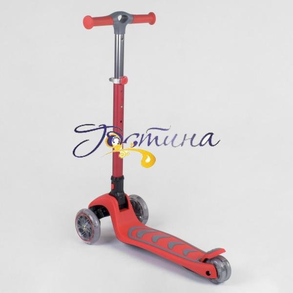 Конструкція самоката складається з трьох коліс – два передніх і заднє здвоєне колесо. За рахунок матеріалу з якого виготовлені колеса даної моделі - поліуретан – самокат безшумний, а їзда на ньому м'яка і комфортна. Всі колеса під час руху світяться різнобарвними квітами.