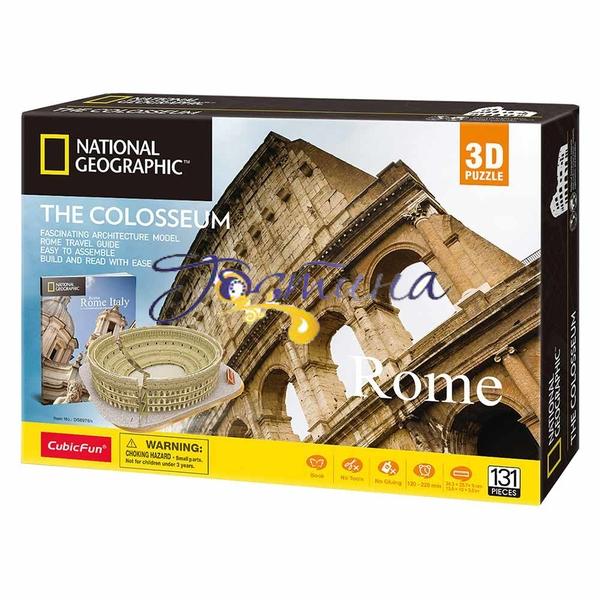 Унікальна тривимірна головоломка із серії National Geographic від торгової марки Cubic Fun дозволить зібрати неймовірно реалістичну копію знаменитого Колизею. Це одна з наймасштабніших споруд Стародавнього Риму, відома ще під назвою амфітеатр Флавіїв, яка збереглася до наших днів. До набору входити 131 об'ємна деталь зі щільного пінополісторола, що має покриття антивідблиску та підвищену зносостійкість для захисту від механічних пошкоджень. Розмір готової споруди становить 26 х 34 х 9 см. Гра тривимірними пазлами стимулює розвиток моторних функцій, просторового сприйняття, образного мислення, уваги та уяви. Рекомендований вік - від 8-ми років.