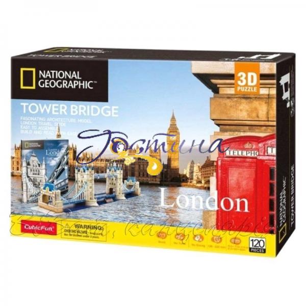 Разом з новим конструктором-пазлом із серії National Geographic від торгової марки Cubic Fun дитина зможе зануритися в красиву життя Лондона та побудувати знаменитий Тауерський міст. Це розвідний міст над річкою Темза, який давно вважається символом Лондона. У наборі представлено 120 об'ємних деталей, виготовлених з безпечного та зносостійкого пінокартону, який має підвищену зносостійкість і витримує багаторазове складання. Розмір готової споруди становить 22х80х18 см. Гра з пазлами сприятливо позначається на тренуванні дрібної моторики та координації рухів, формує просторове сприйняття та образне мислення. Рекомендований вік - від 8-ми років.