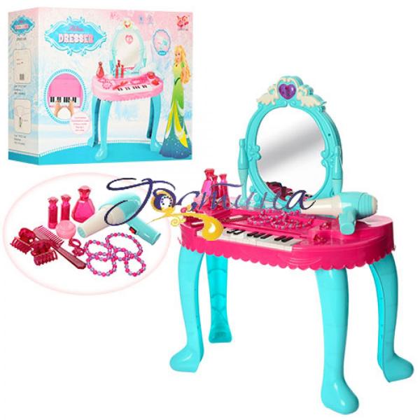 Трюмо ширина 50см, висота 68см Піаніно музичний, ноти Дзеркало музичне, проявляється картинка Аксесуари: фен, гребінець, браслети та ін. звукові ефекти світлові ефекти Харчування: батарейки (в комплект не входять) Вік: 3+ Упаковка: коробка 51-38-14см