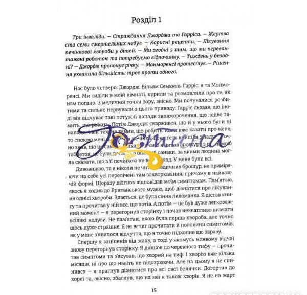 Повість Джерома К. Джерома про трьох нерозлучних друзів, які подорожують човном по Темзі, смішить людей уже понад двісті років. Гарріс, Джей і Джордж вирішують відпочити від міської метушні, але, як незабаром з’ясовується, не все так просто. Будь-яка дрібниця — починаючи від зборів і закінчуючи спробою відкрити бляшанку з консервою, — може стати причиною кумедних пригод. А коли в човні, крім трьох завзятих джентльменів, присутній ще й вкрай енергійний фокстер’єр, веселощі гарантовано, особливо читачам.