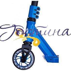 Трюковий самокат для екстремального катання, стрибків, виконання різних трюків. Легковісна посилена рама. Надміцна передня вилка, широке Т-подібне кермо з двоколірними прогумованими ручками, для полегшення елементів обертання, можливість повороту керма на 360 градусів.100% алюмінієва рама. Надійний 3-х болтовий хомут. Посилена дека із міцного алюмінію. Колеса 110 мм PU з дисками з дюралюмінію. Гальмо: Задні, ножні Матеріал кермової стійки: Хромолева сталь (CrMo) Рульова система: HIC neco (Hidden Internal Compression) Матеріал деки: Алюміній Матеріал грипс: Гума Матеріал коліс: Алюміній Діаметр коліс: Переднє х Заднє 110 × 110 мм Підшипники: ABEC 9 Chrome Ширина деки (см) 12 Довжина деки (см) 51 Ширина керма (см) 57 Висота керма від деки (см) 77 PEG: так (1шт)